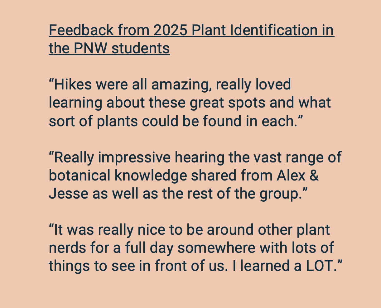 One of our favorite parts of teaching classes like this is the community of plant lovers that forms as we spend time together in the field. If you’re looking to befriend more fellow nature appreciators and strengthen your botanical community, this will be a great place to do it!